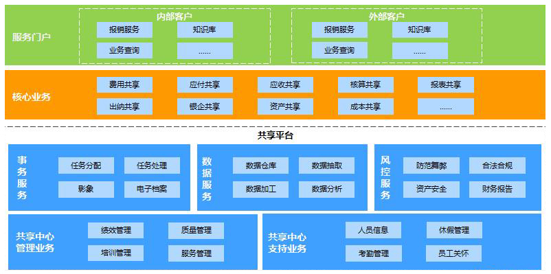 针对企业所有的财务业务流程进行全面共享,提供共享服务平台、应收应付共享、支付共享、费用共享、核算共享、报表共享等来全面支持企业业务活动,企业其他的异构系统还可以通过集成平台接入核算系统或共享任务平台,真正打造企业信息的一体化。